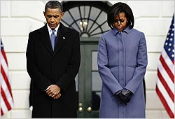 "Convido os americanos a observar um momento de silêncio em honra das vítimas inocentes da insensata tragédia em Tucson, Arizona, incluindo aquelas que ainda lutam por suas vidas", havia anunciado o presidente em uma nota emitida ontem (9).